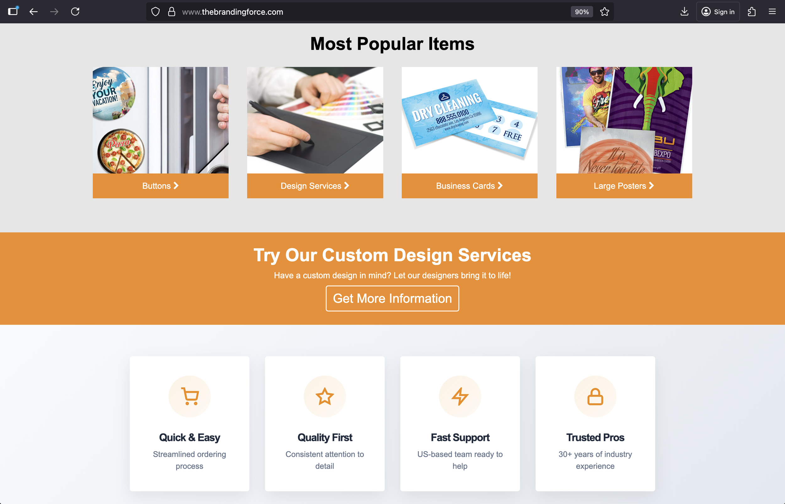The Branding Force is a online shop that specializes in branding and print services. Their needs consisted of brand development and strategy, and website revamping and design.